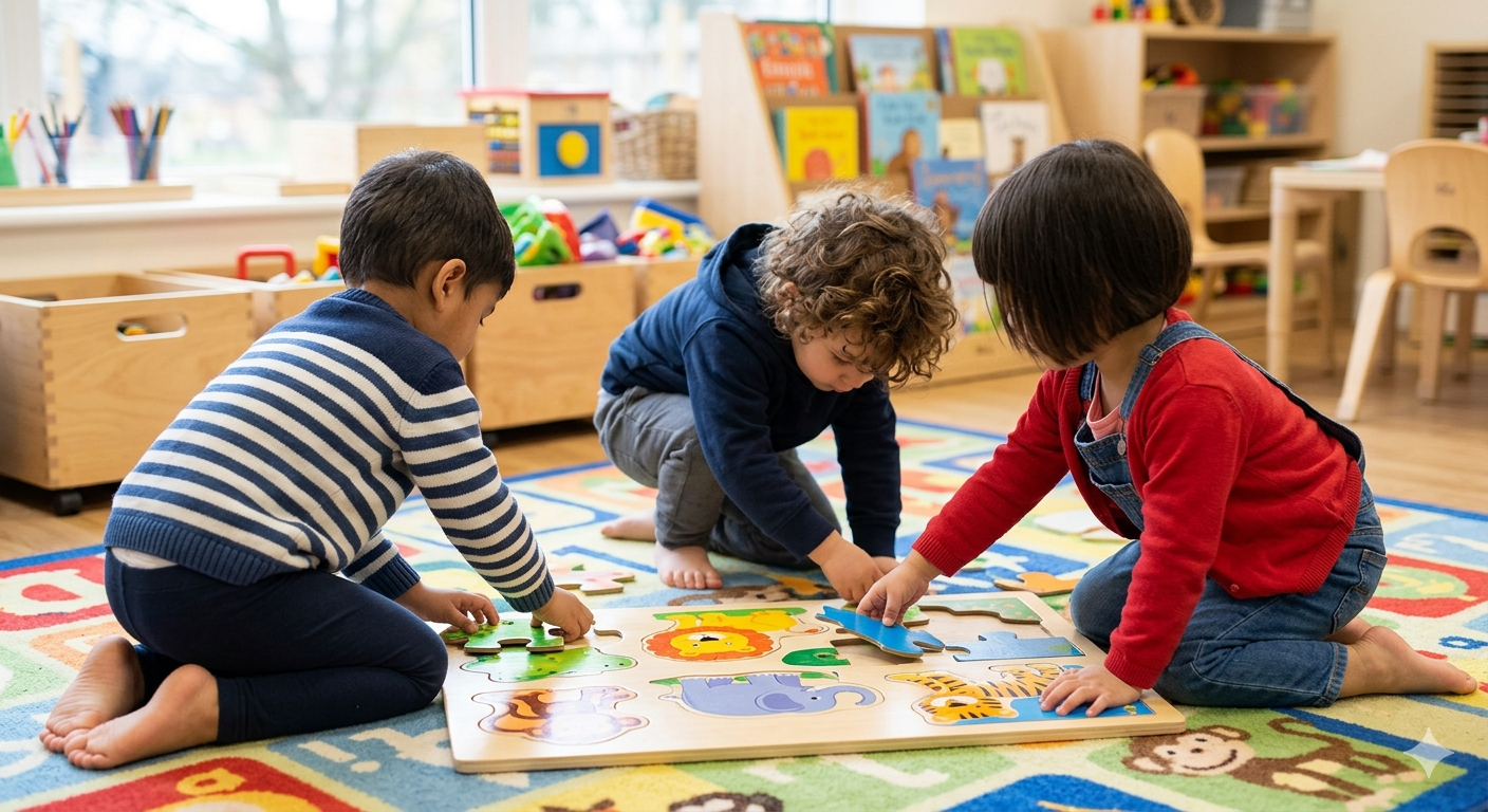 Age-Appropriate Activities: Simple puzzles, stacking blocks, posting games, matching pairs, and interactive books.